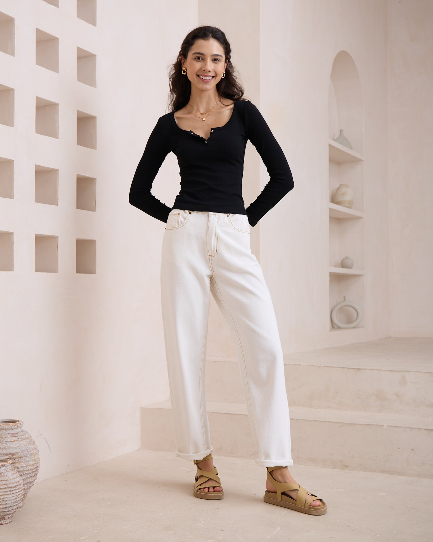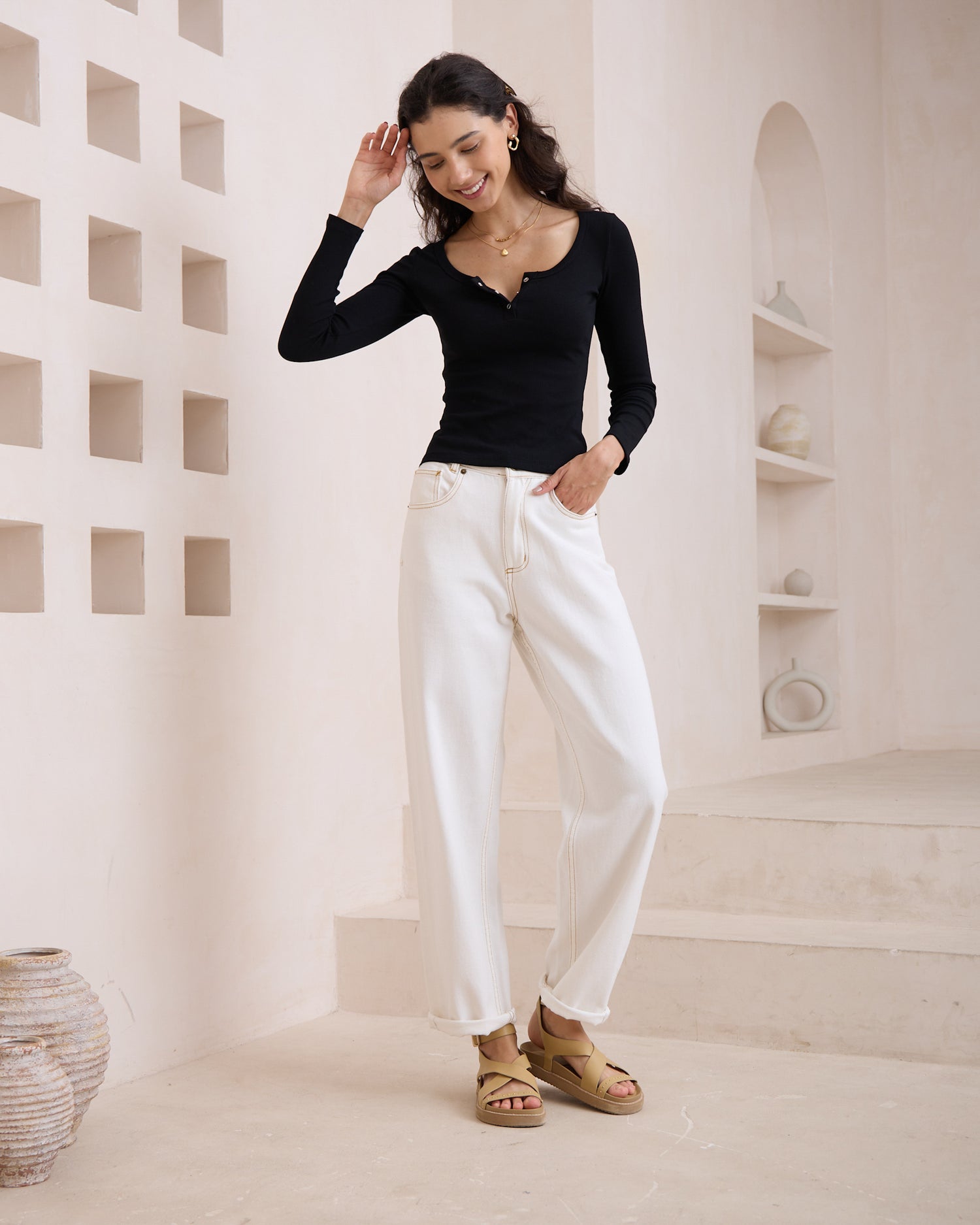 Ada Black Ribbed Long Sleeve Top
