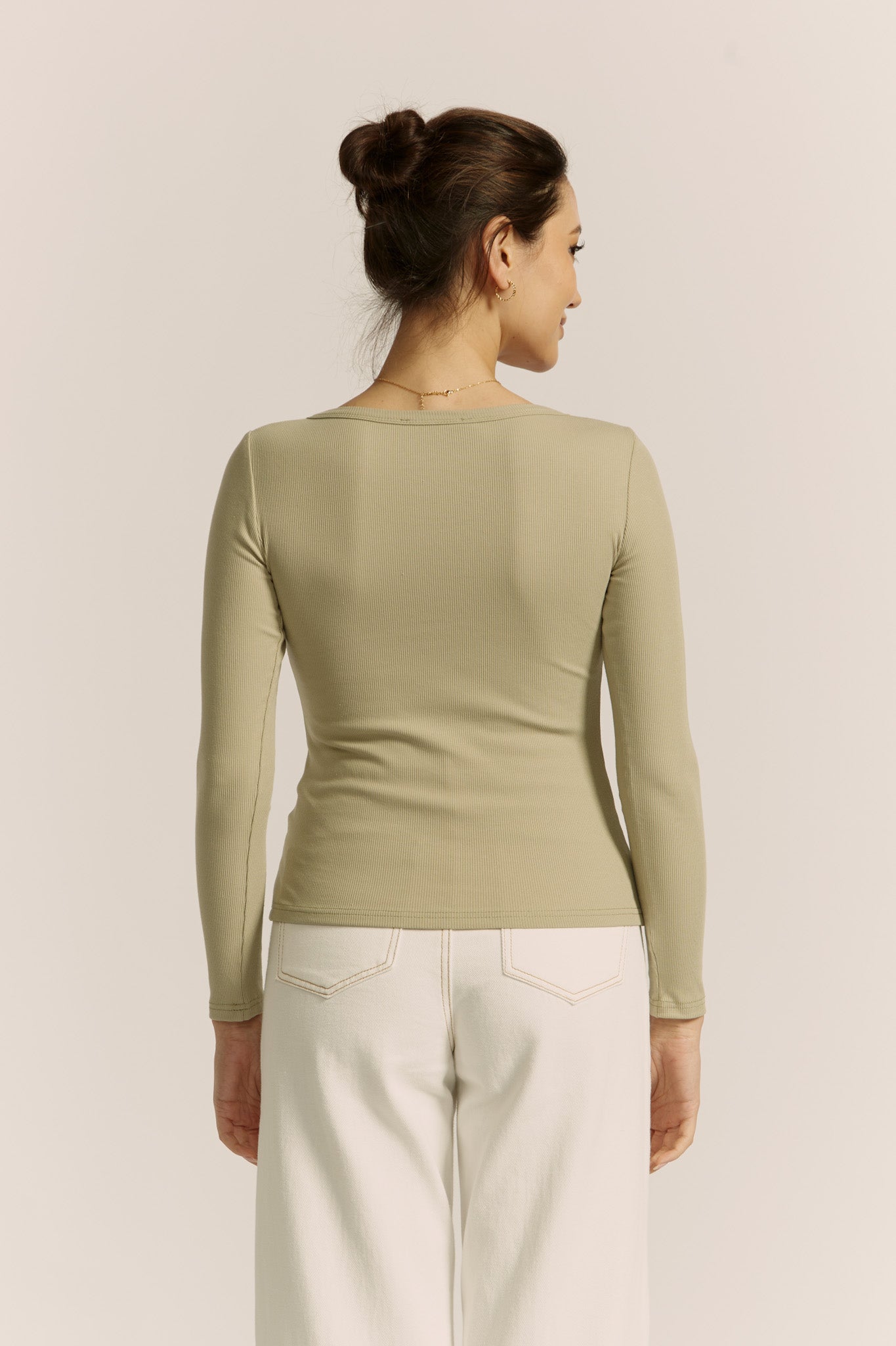 Ada Light Khaki Green Ribbed Long Sleeve Top