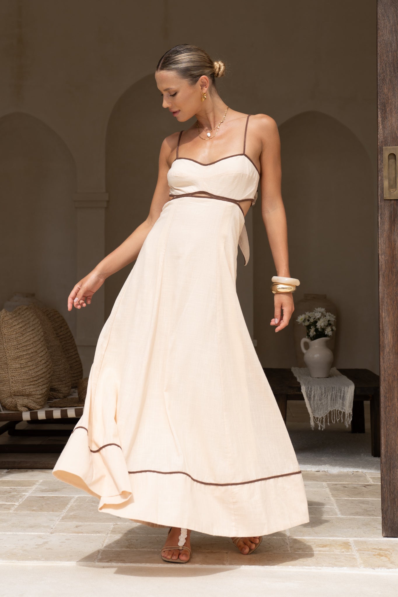 Aris Beige Tie Back Maxi Dress