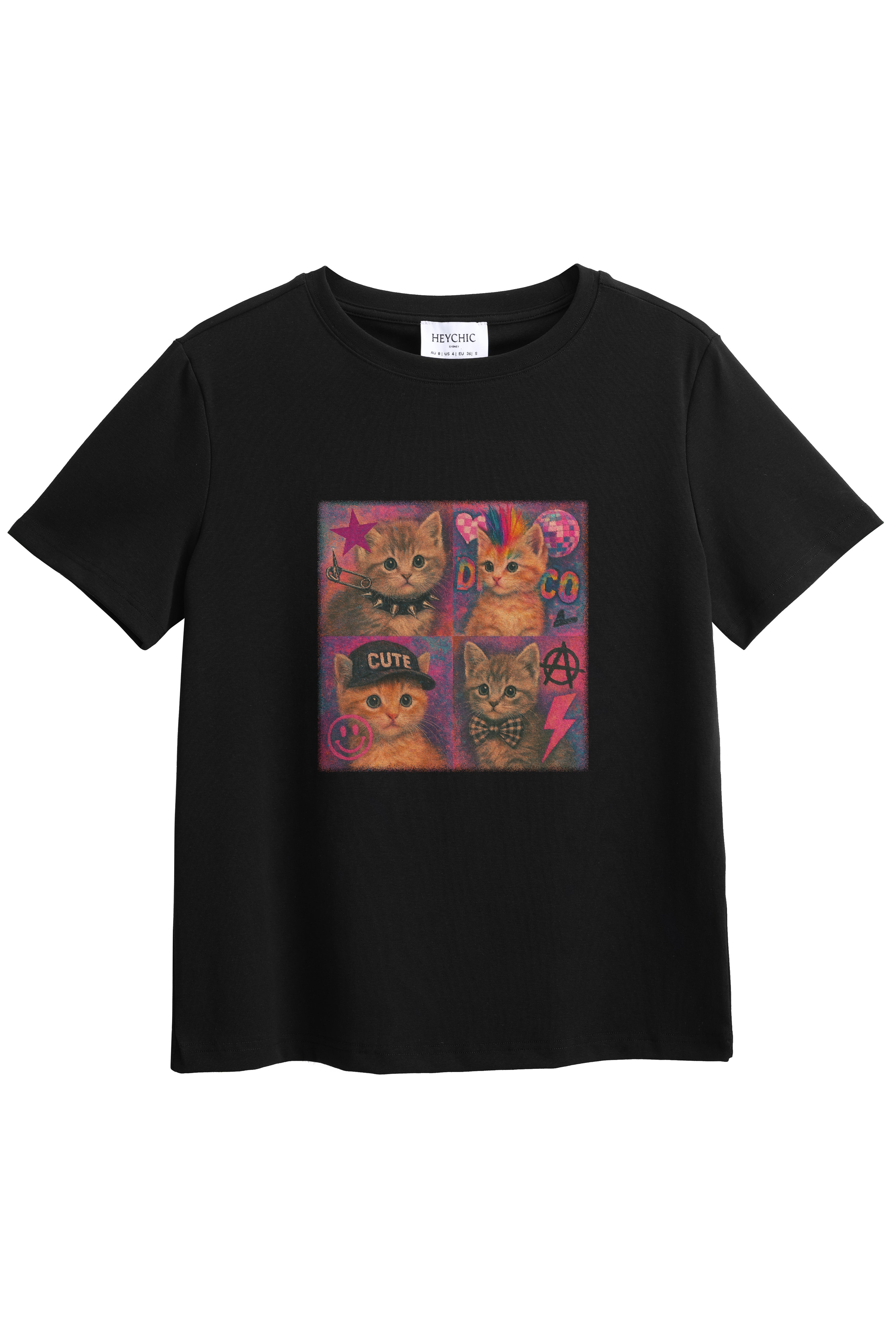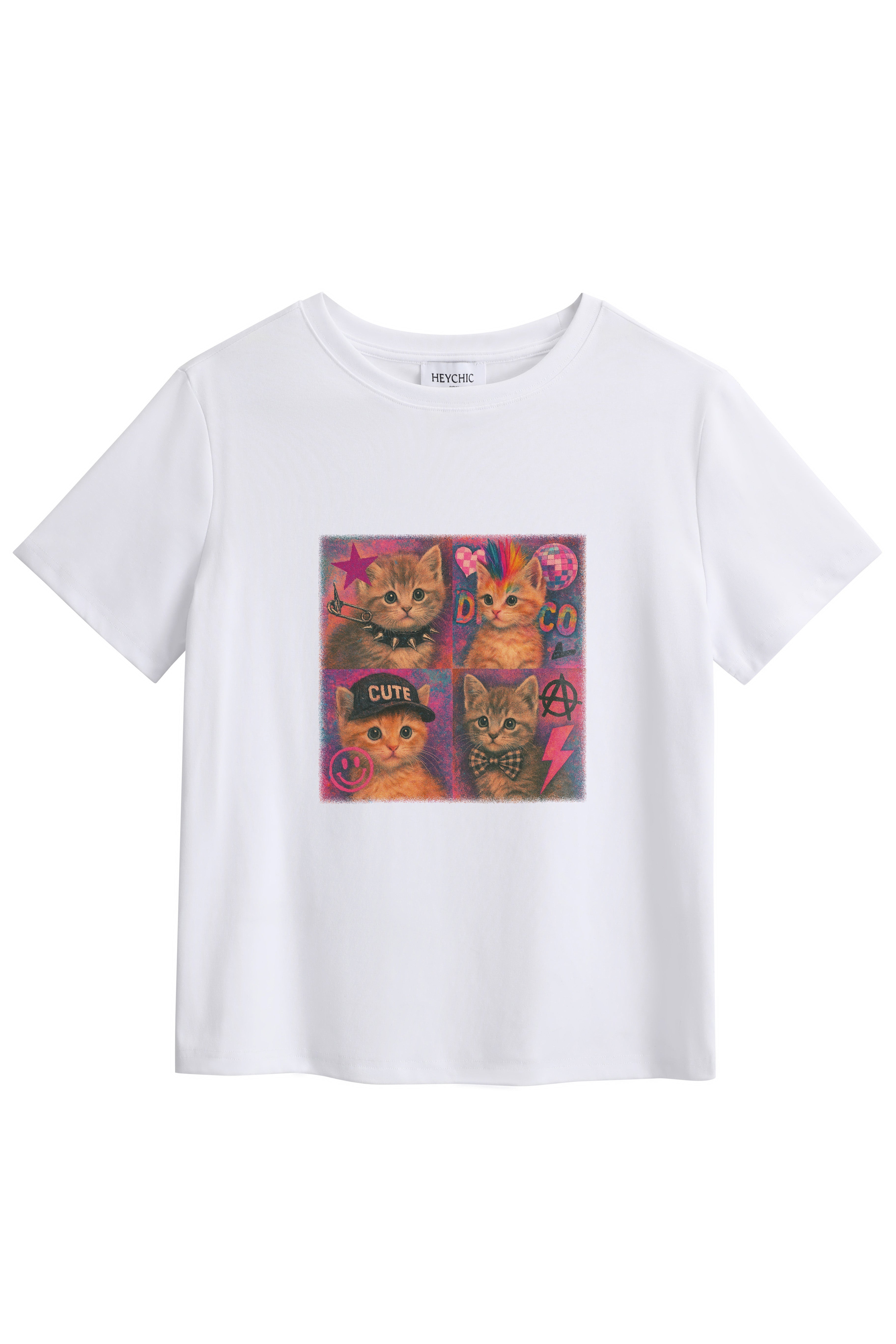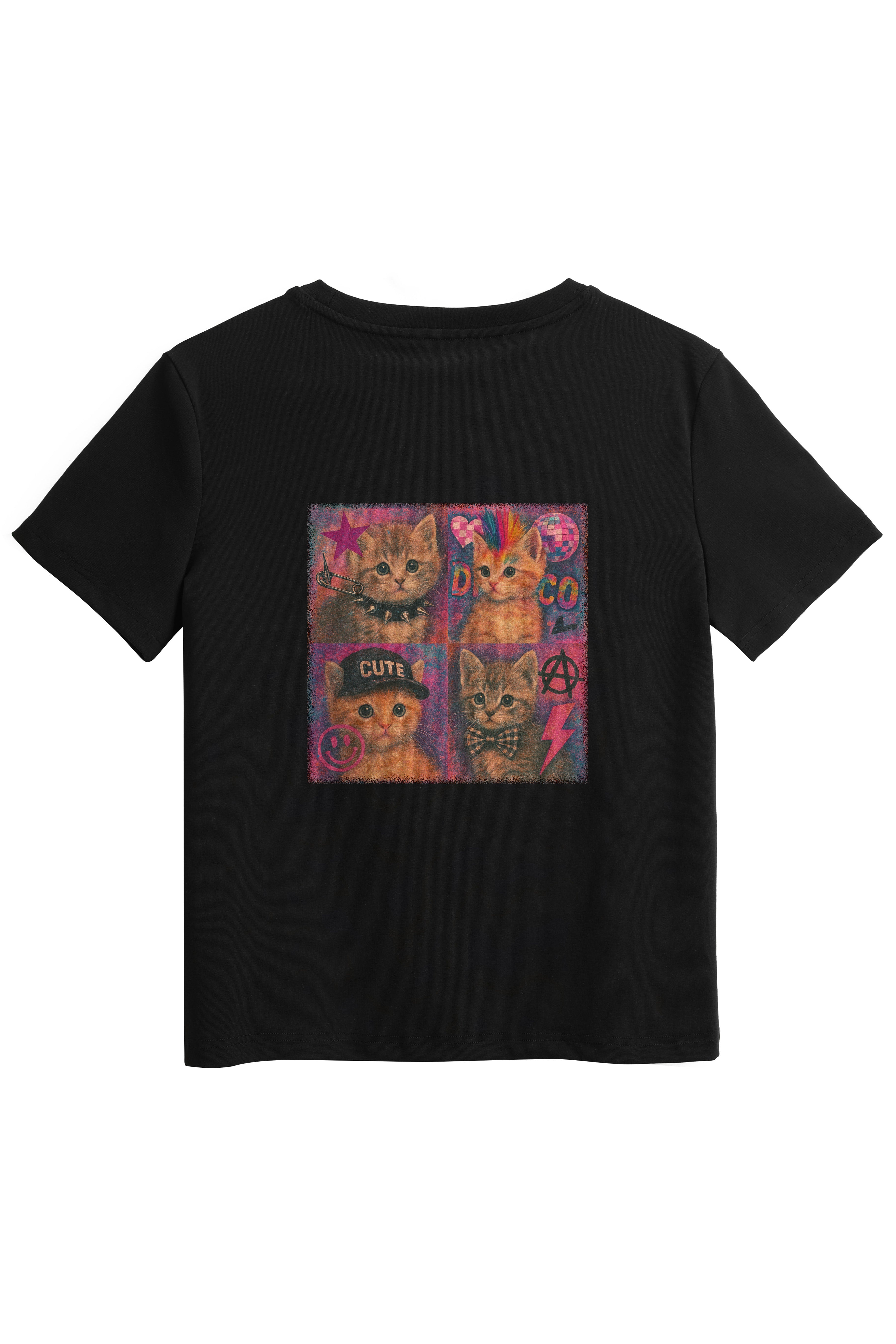 Express your individuality with our made-to-order printed T-shirt featuring the Disco and Punk Cats design. Crafted from a soft and stretchy cotton-spandex blend, this tee offers a Classic fit with a round neckline and hip-length hem - perfect for everyday comfort with a splash of fun. Firstly, choose from a white or black base colour, then choose the print position at the front or back. Each shirt is printed on demand, ensuring your chosen design stands out. Pair it with your fav denim jeans, skirts, or shorts for a casual-cool look that's uniquely yours.