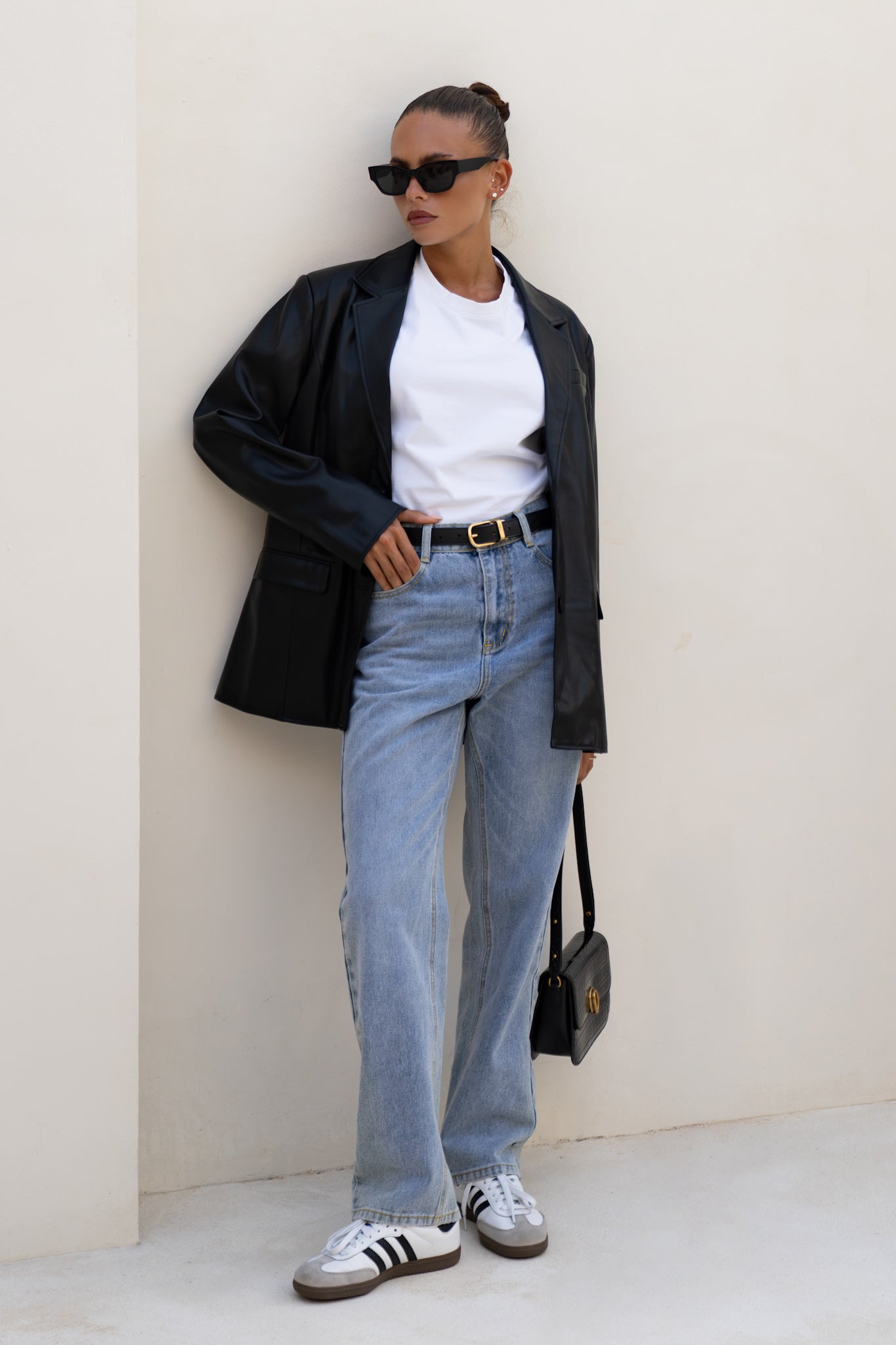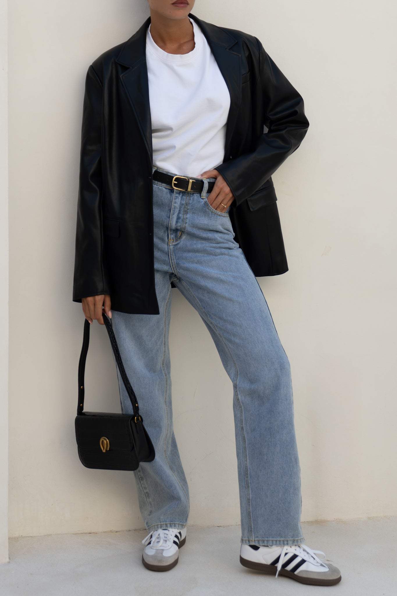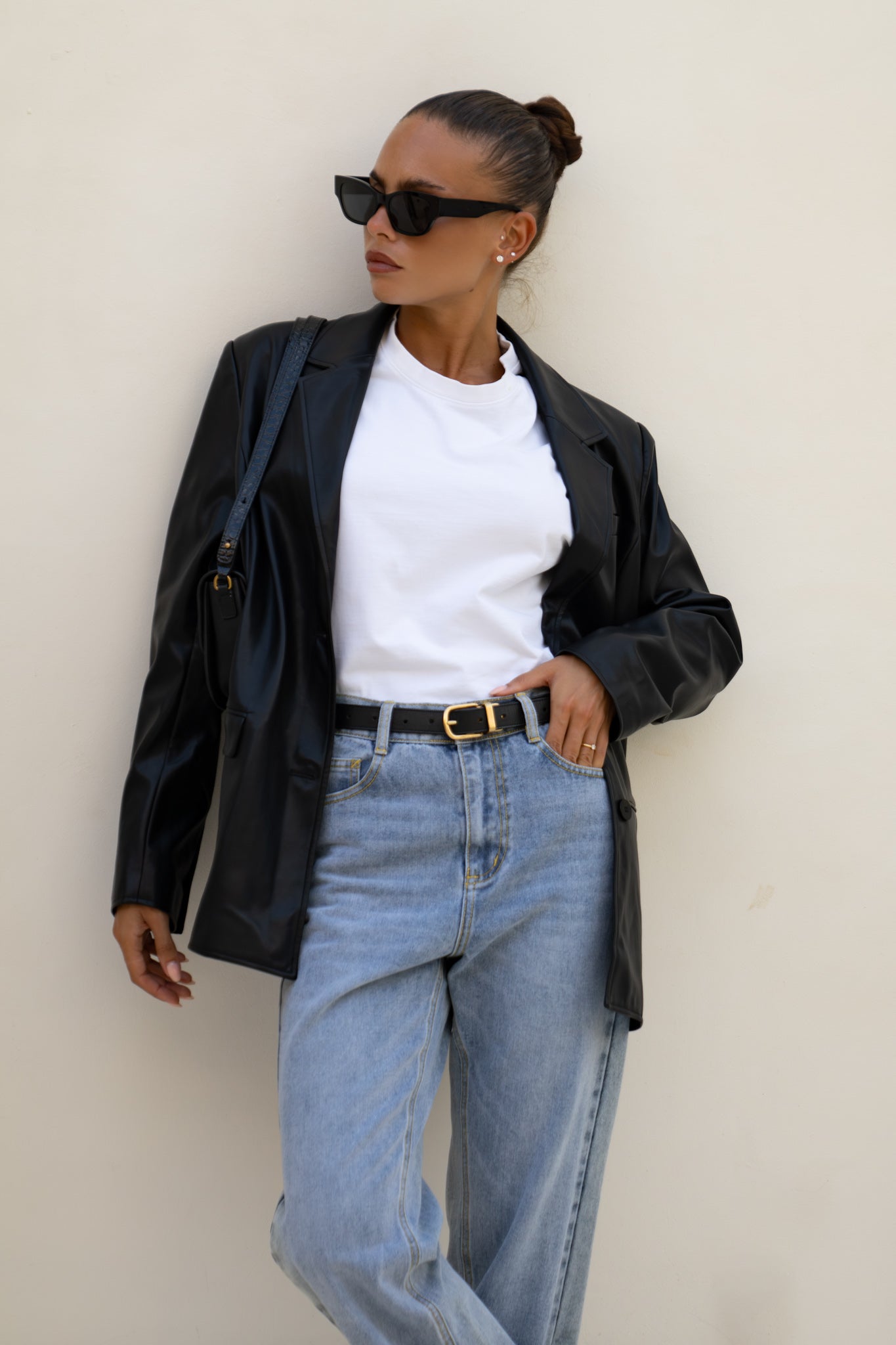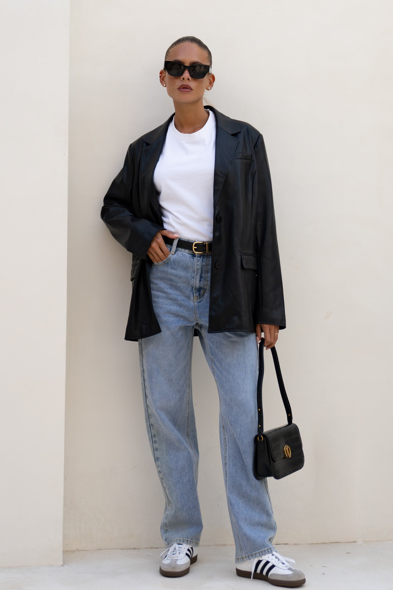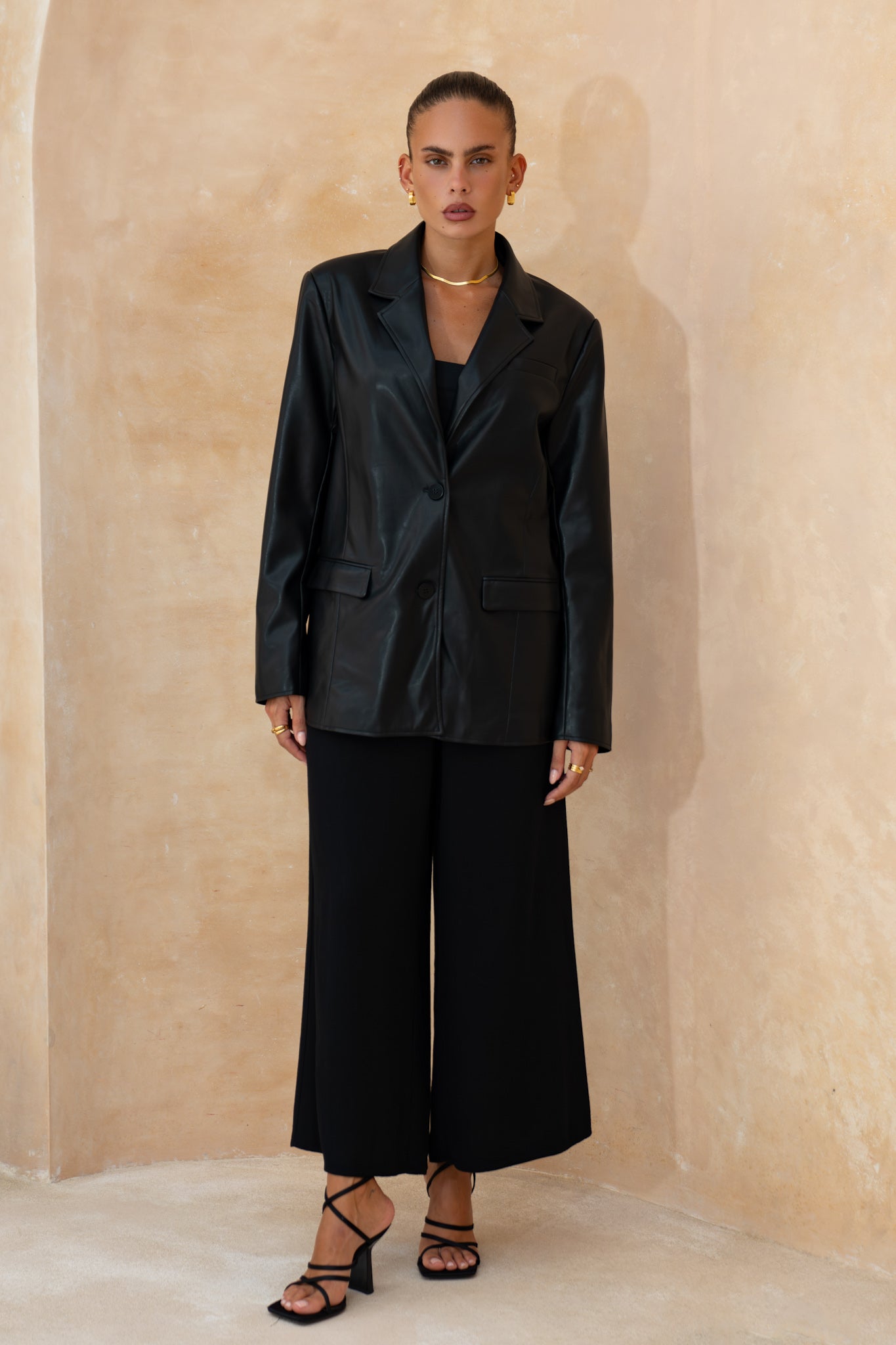 Let’s be real - some jackets just talk the talk. The Ellison Black Faux Leather Blazer from Heychic? It walks the walk, struts it, and then closes the deal. This isn’t your average black faux leather jacket; it’s that rare blend of polish and low-key attitude you didn’t know you were missing. The notched lapels and single-breasted front add a dash of boardroom energy, while the longline silhouette brings just enough edge to keep things interesting. There’s a subtle sheen to the PU leather—catching light in all the right places—so you look put-together without even trying. Deep flap pockets, chest welt pocket for flair, and a smooth lining that feels like a secret luxury. Toss it over jeans for instant boss vibes or layer it on a silk dress when you want to own the room…or brunch. I mean, honestly, isn’t it time your outerwear worked as hard as you do? This women’s black faux leather blazer is for those who want their style sharp but never stiff—and who appreciate a vegan leather jacket that doesn’t compromise on cool. Go ahead, make them stare.
