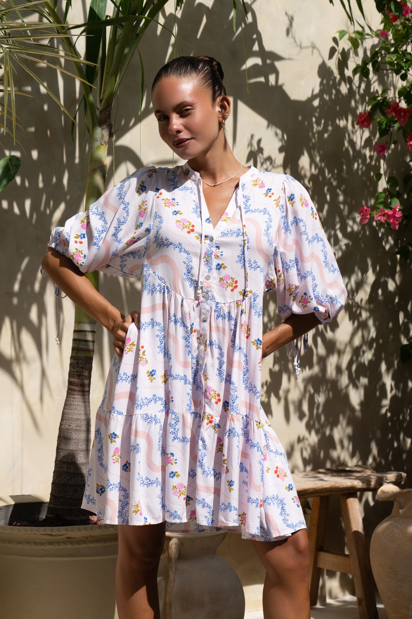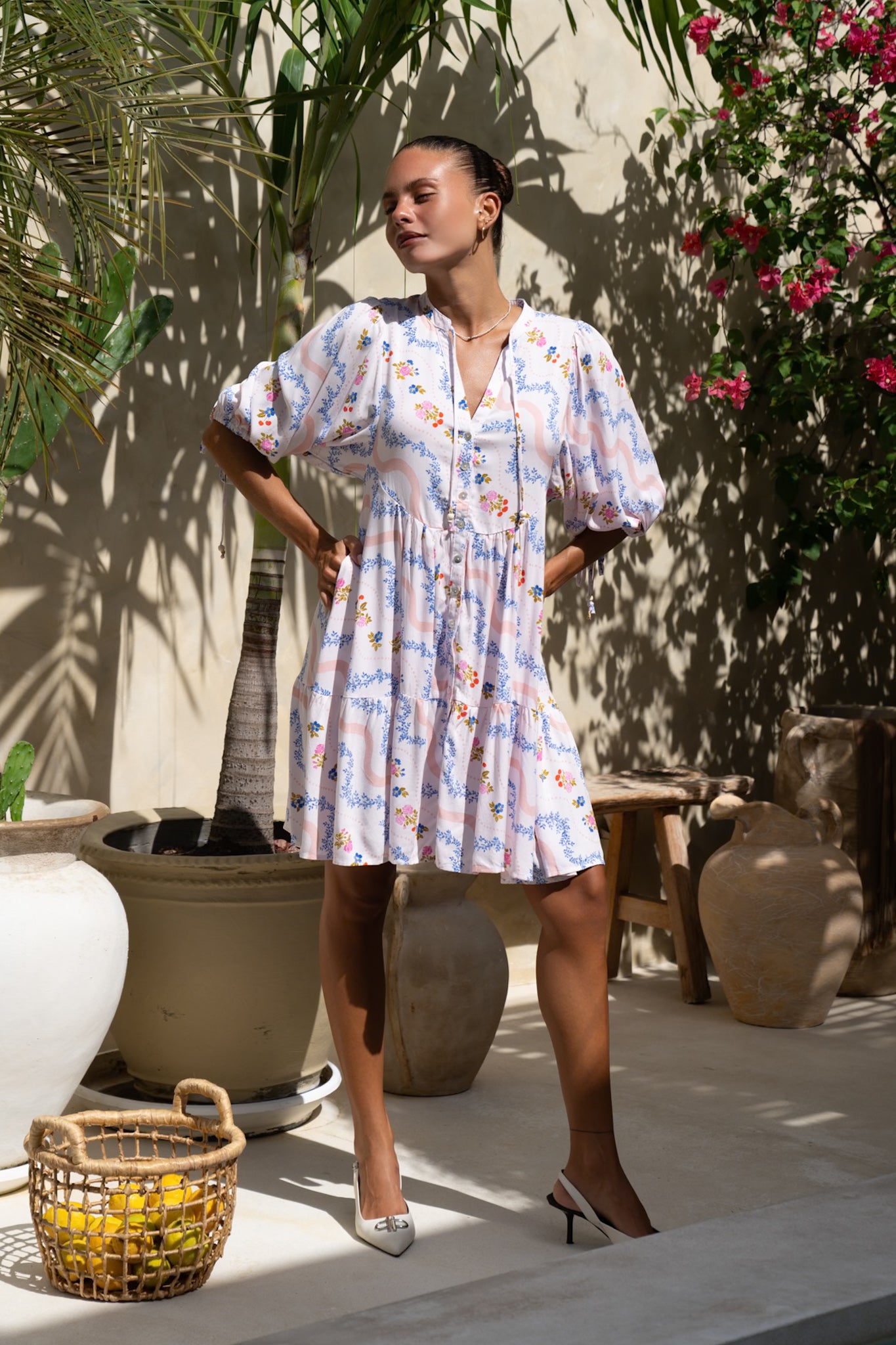 Pre-order item. Estimate to ship:For orders outside of Australia, place separate orders to receive in-stock items first.Expected To Ship Within 2 Business DaysPre-order item. Estimate to ship:For orders outside of Australia, place separate orders to receive in-stock items first.Expected To Ship Within 2 Business DaysPre-order item. Estimate to ship:For orders outside of Australia, place separate orders to receive in-stock items first.Expected To Ship Within 2 Business DaysPre-order item. Estimate to ship:For orders outside of Australia, place separate orders to receive in-stock items first.Expected To Ship Within 2 Business DaysPre-order item. Estimate to ship:For orders outside of Australia, place separate orders to receive in-stock items first.Expected To Ship Within 2 Business DaysProduct Measurement (CM)please select a sizeHighlights V-neckline with tie detail Stand collar Button down front Balloon sleeves with elasticated cuffs and self-tie 2 Side pockets Mini length Multicolour pink, blue, yellow and white abstract tile print Details Our Tilly dress is super breezy and lightweight, perfect for sunny days! The statement abstract print will make...- Regular price