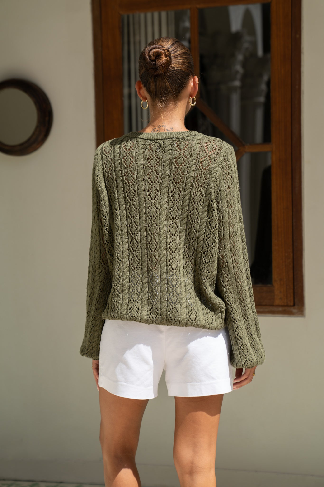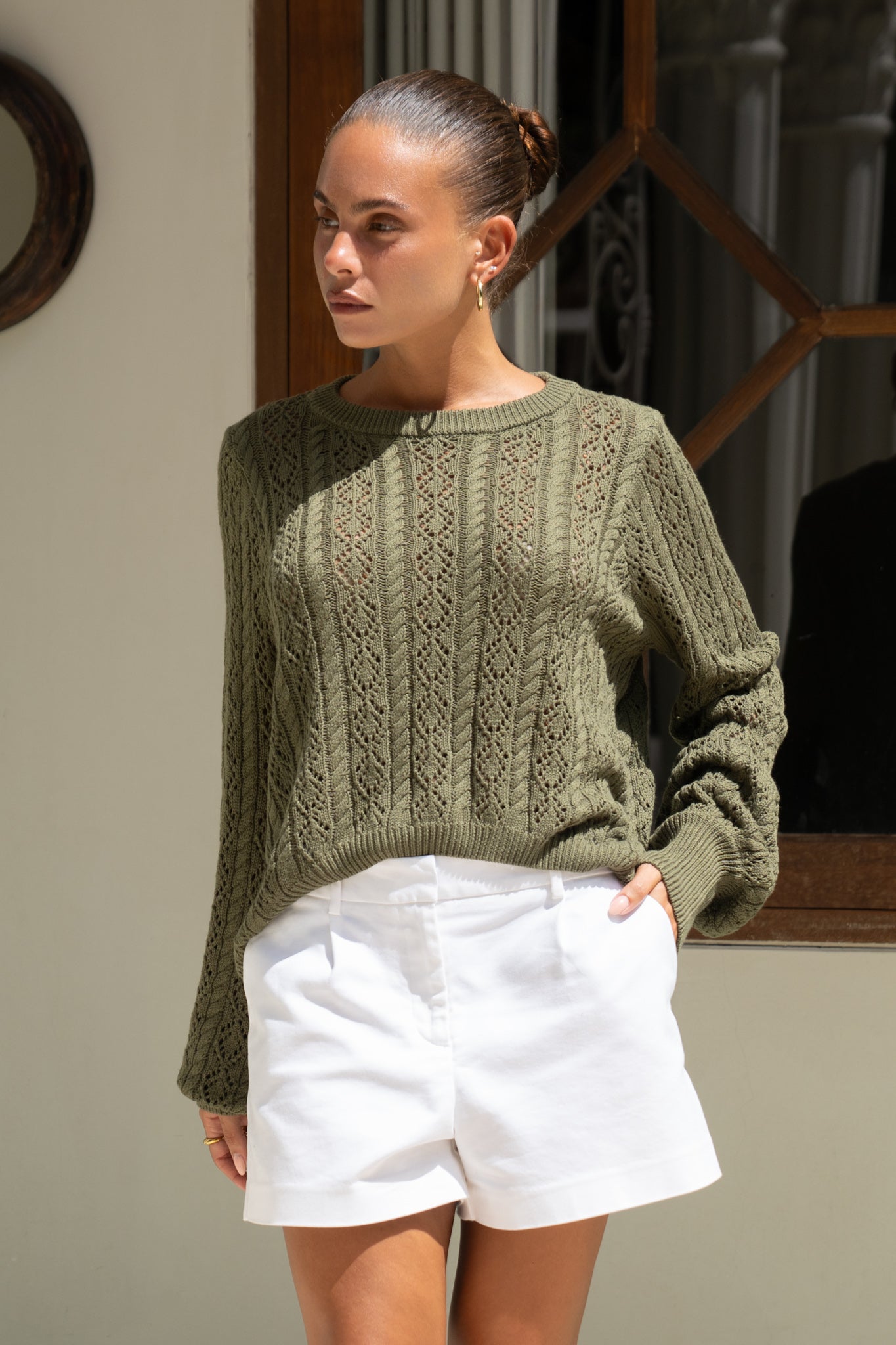 Haisley Khaki Pointelle Knit Sweater