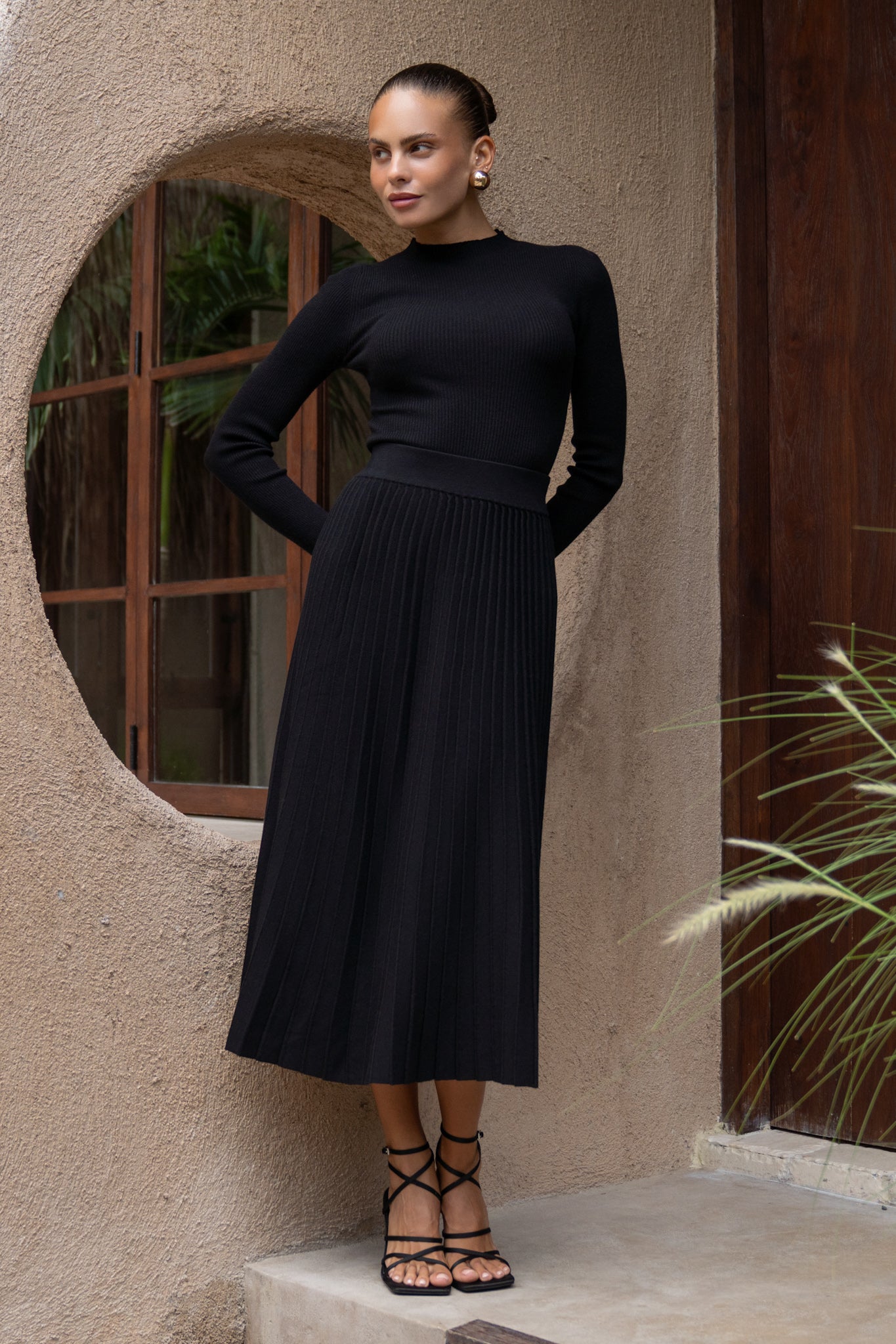 The Hana Knit Midi Skirt is a modern-day classic. Effortless, endlessly wearable, and just tailored enough to feel intentional. With its softly structured pleats and beautifully draped silhouette, it sways as you move, graceful, composed, and quietly commanding. The high waist flatters. The knit hugs without gripping. And those delicate pleats? They create just the right amount of texture, catching the light in all the right places. It's the piece you can throw on in five minutes and still look like you planned your outfit three days ago. Style it with a second-skin knit, a crisp poplin shirt, or an oversized sweater for contrast. Whether you’re headed to the office or just want to feel a little more elegant while grabbing your morning latte, this skirt delivers. Reliable but never dull, it’s your not-so-basic basic, with a twist of polish.