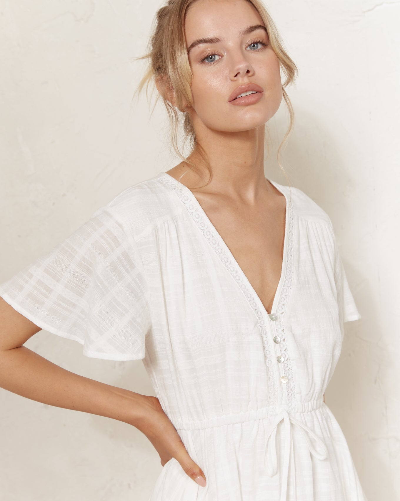 Pre-order item. Estimate to ship:For orders outside of Australia, place separate orders to receive in-stock items first.Expected To Ship Within 2 Business DaysPre-order item. Estimate to ship:For orders outside of Australia, place separate orders to receive in-stock items first.Expected To Ship Within 2 Business DaysPre-order item. Estimate to ship:For orders outside of Australia, place separate orders to receive in-stock items first.Expected To Ship Within 2 Business DaysPre-order item. Estimate to ship:For orders outside of Australia, place separate orders to receive in-stock items first.Expected To Ship Within 2 Business DaysPre-order item. Estimate to ship:For orders outside of Australia, place separate orders to receive in-stock items first.Expected To Ship Within 2 Business DaysProduct Measurement (CM)please select a sizeHighlights Scooped neckline Adjustable spaghetti straps Ruched elasticated stretchy bodice Adjustable tie detail along the neckline Tie detail on the waist Fit and flare silhouette Mini length White cotton Details Fresh and feminine, the Finley White Ruched Mini Dress is your perfect go-to for effortless summer style. Crafted from breathable...- Regular price