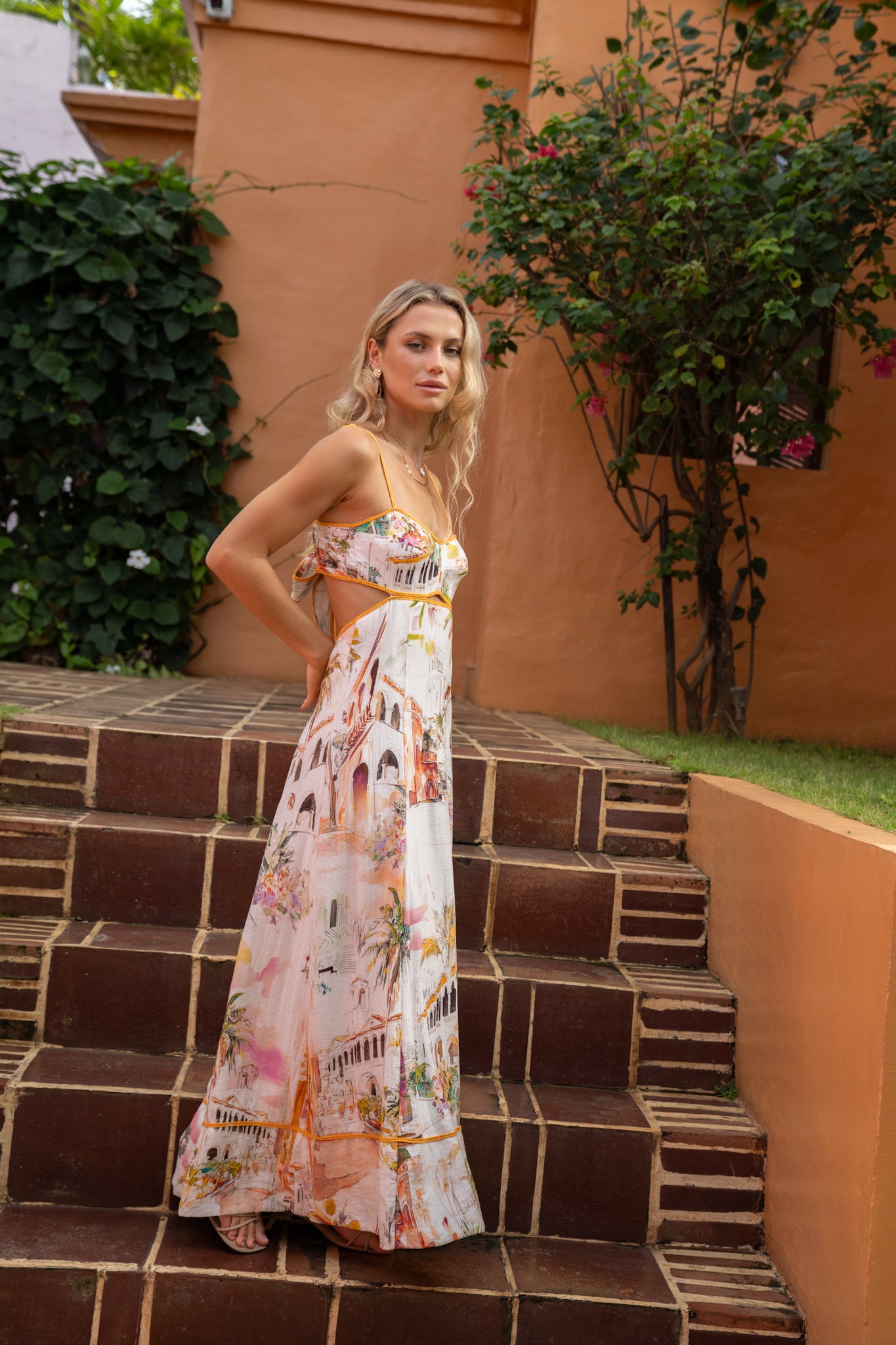 The Isola Tie Back Maxi was designed for entrances: slow walks, warm nights, and that golden-hour light that makes everything feel cinematic. The sweetheart neckline softens the look, giving shape without being overly structured, while the contrast trim adds that tiny detail that makes the whole dress feel considered rather than basic.