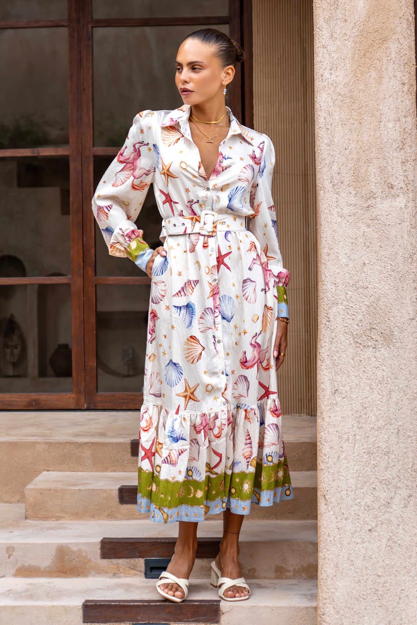 Oh, you’re going to LOVE the Lauriane Multicolour Abstract Maxi Dress – it’s that perfect mix of put-together and easygoing style. Picture this: a classic collar and button-down front that give it just enough polish, but the flowy maxi skirt keeps things fun and feminine. The long sleeves with cute cuffed details? Such a nice touch – not too stiff, just the right amount of elegance. And that adjustable belt? Total game-changer. It nips you in at the waist for the most flattering shape without feeling tight or fussy. Honestly, this dress does it all. Wear it to work with heels for a professional vibe, throw on sandals for weekend brunch, or dress it up for a special occasion. It’s one of those rare pieces that’s as versatile as it is pretty, basically, the kind of dress you’ll reach for again and again.