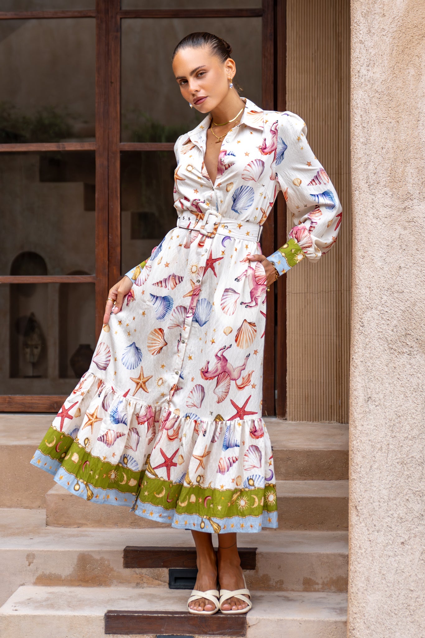 - Multicolour abstract seashells and horses print