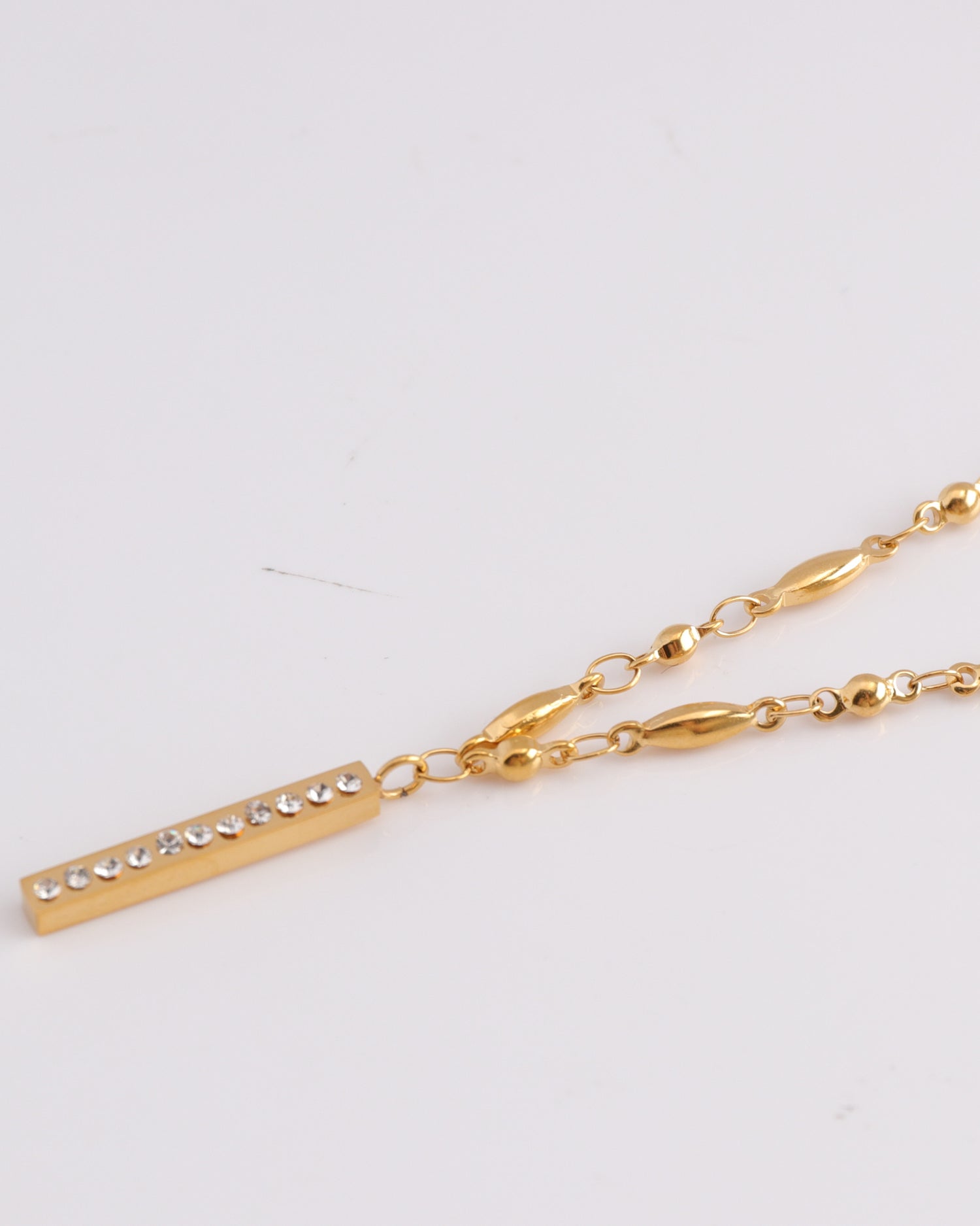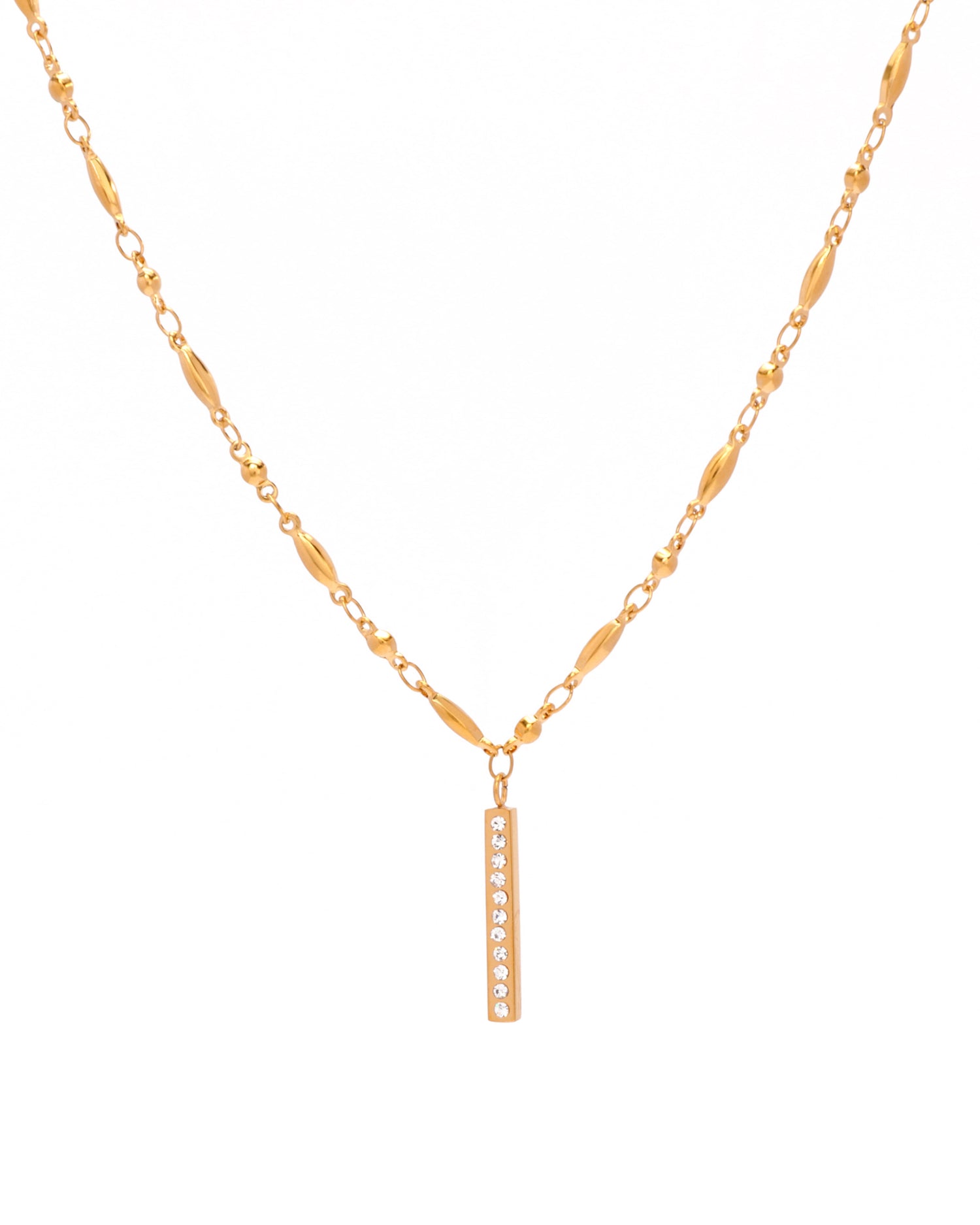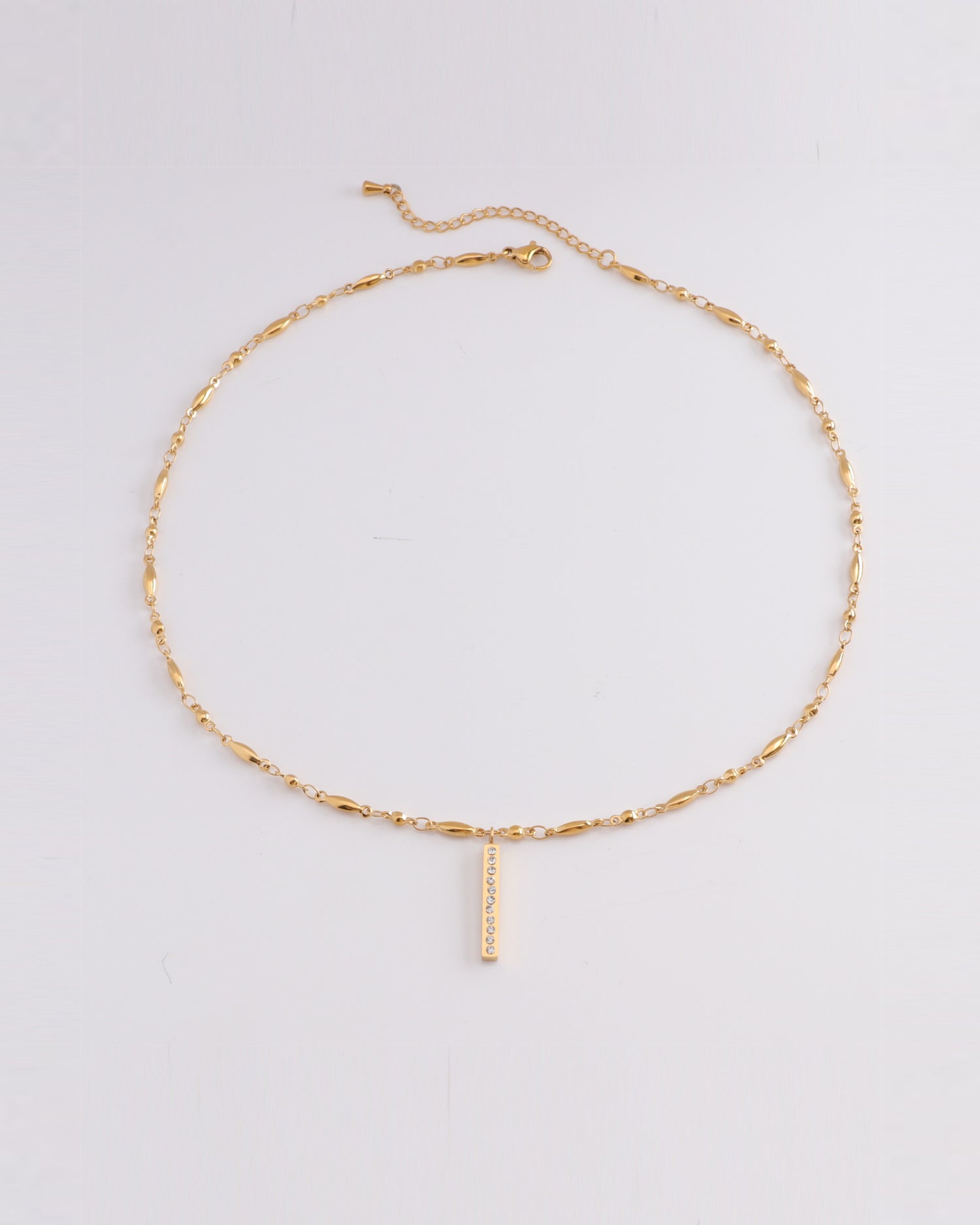 The necklace is crafted from high-quality stainless steel with 18k gold plating.