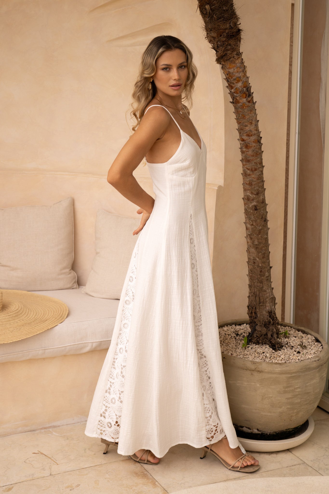 Marie White Lace Detail Maxi Dress