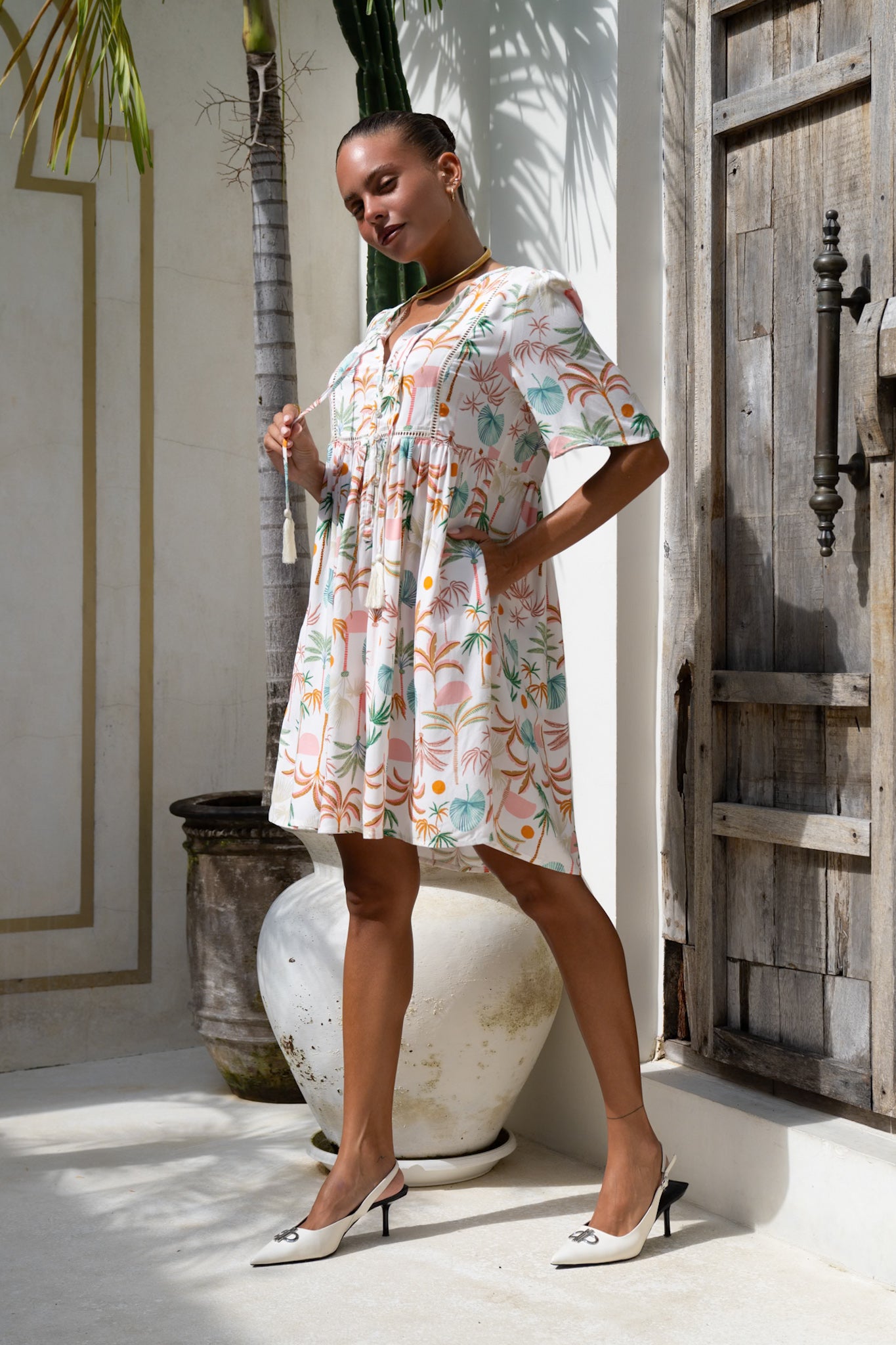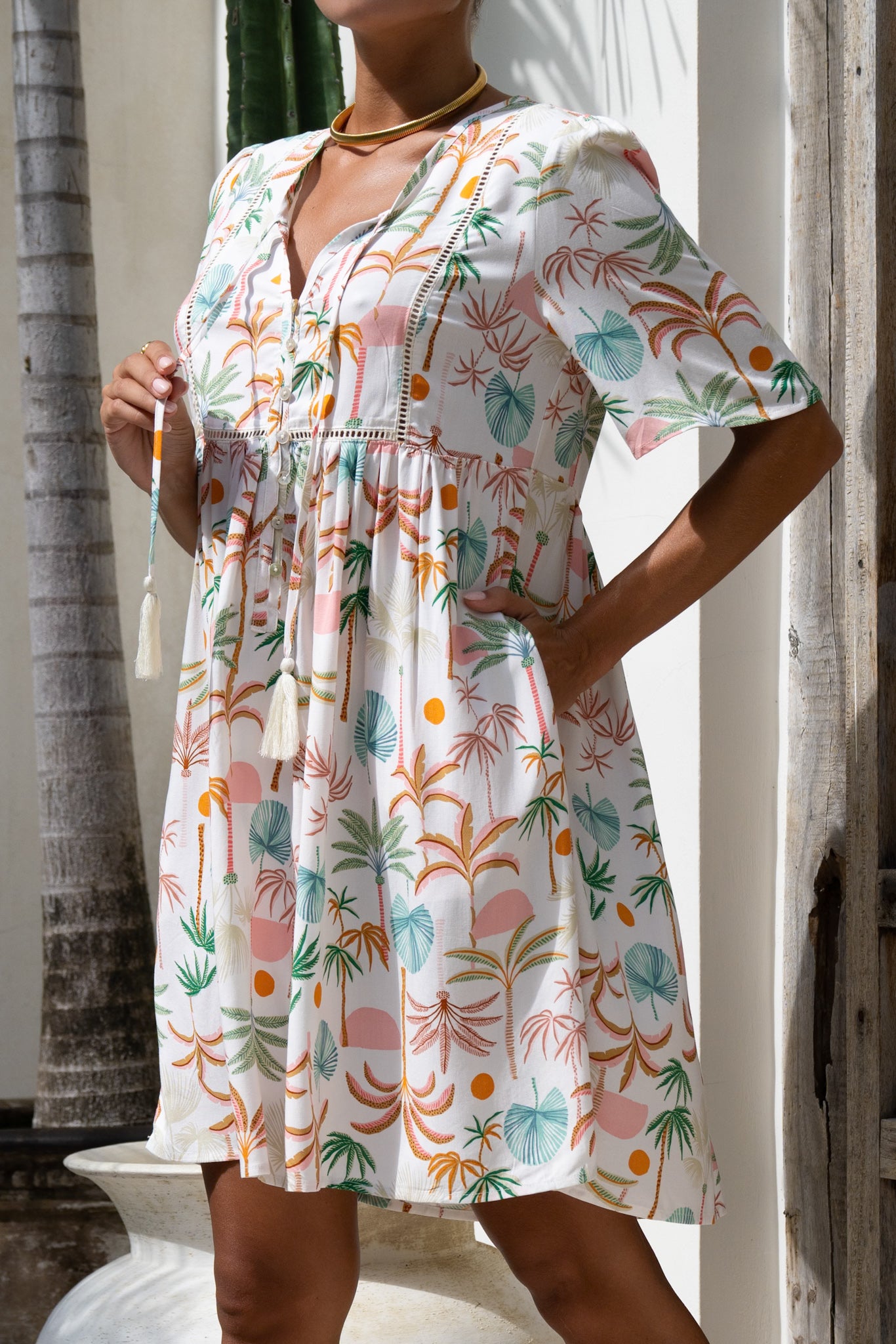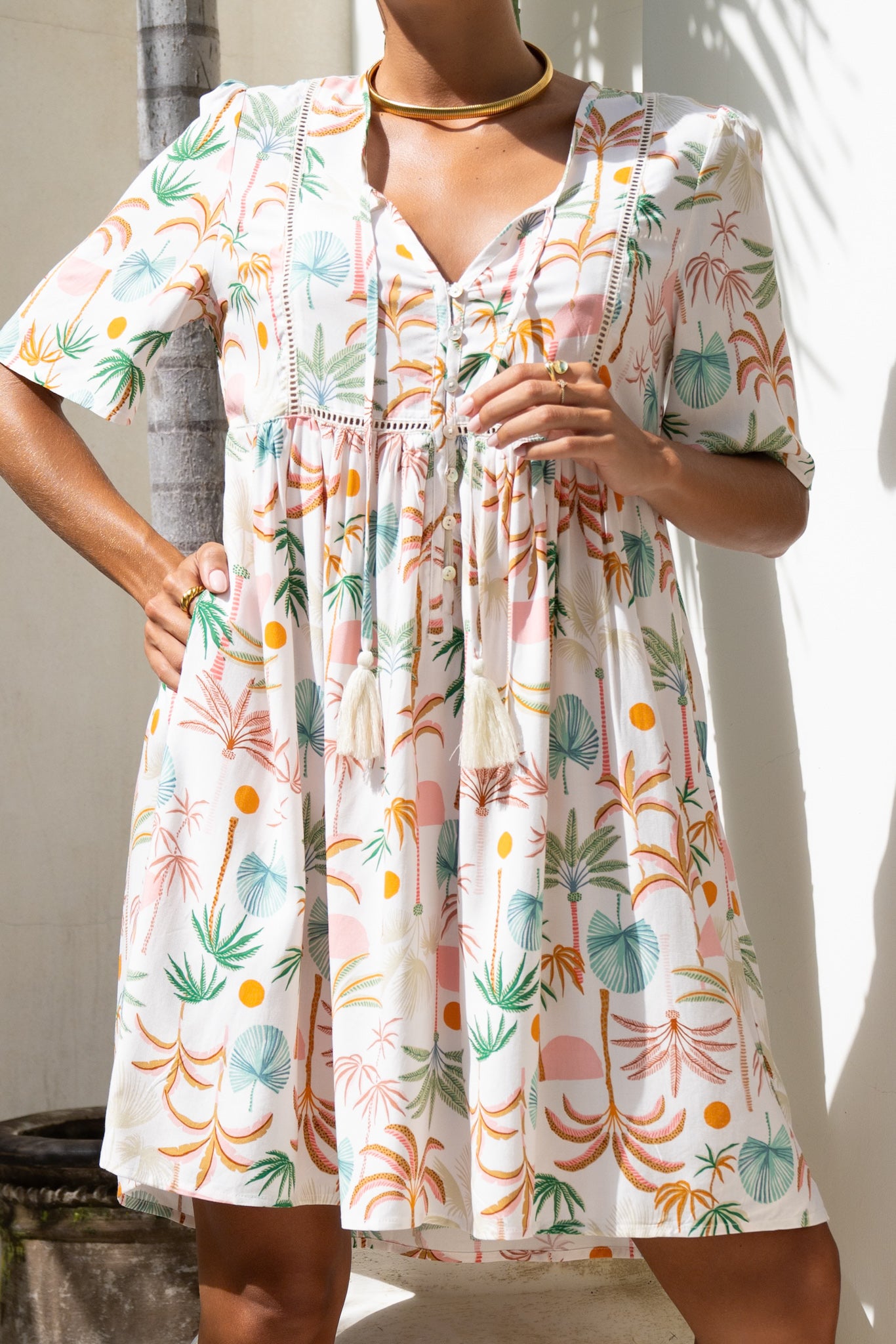The Paloma mini dress is made with 100% rayon.