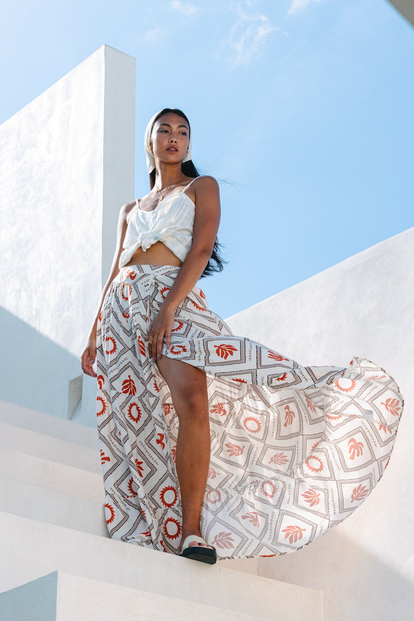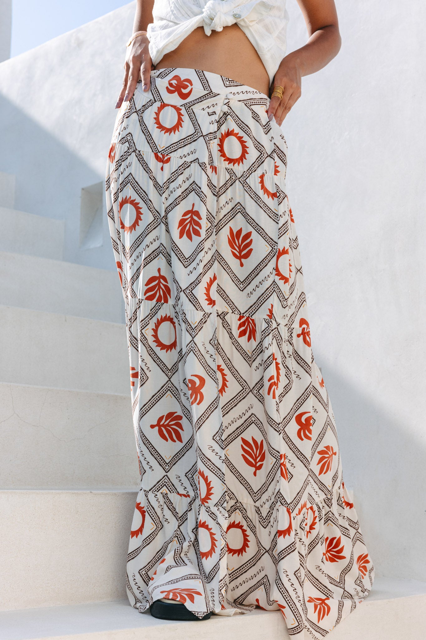 Savita Beige Rust Tropical Tiered Maxi Skirt
