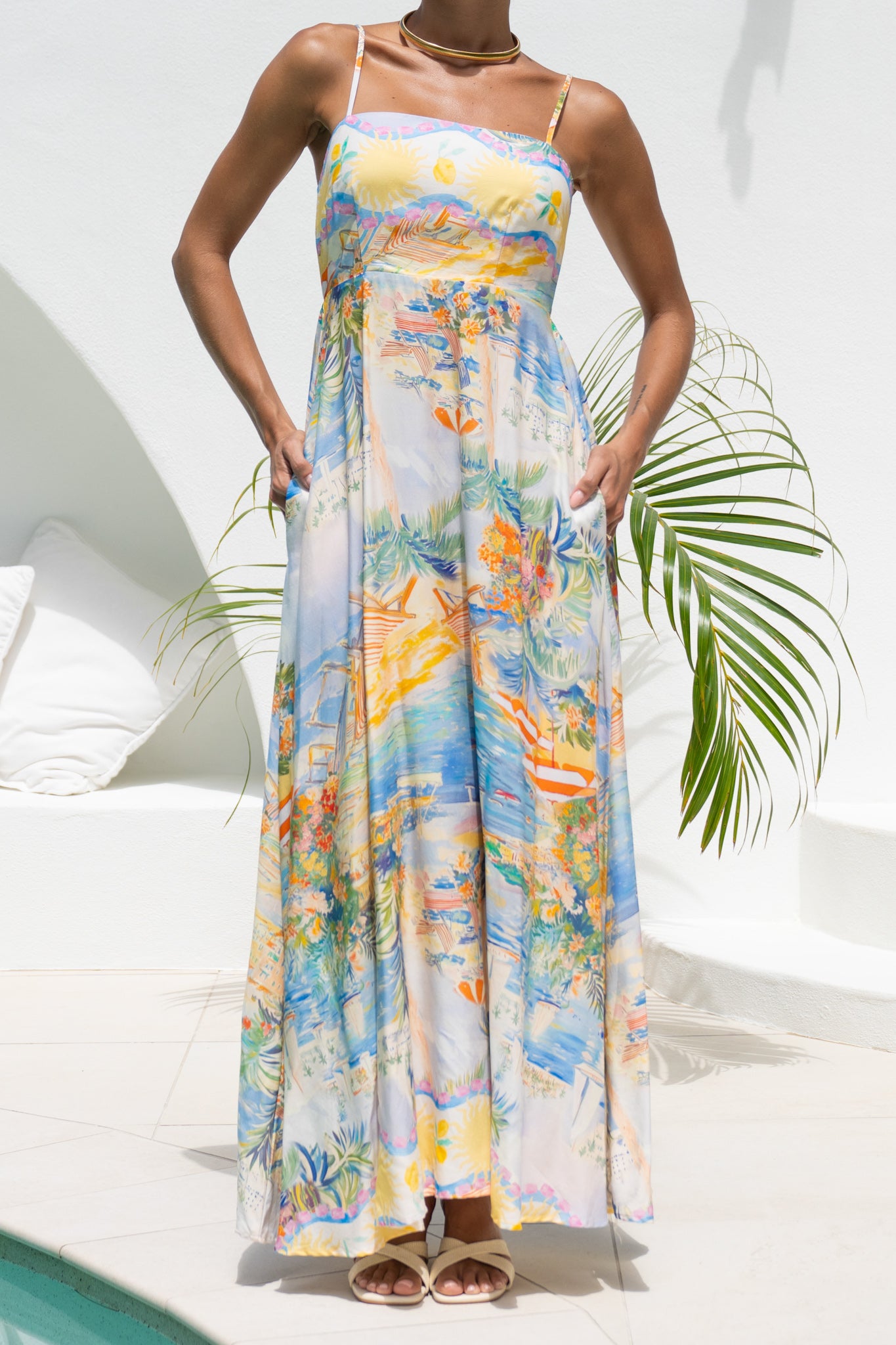 Pre-order item. Estimate to ship:For orders outside of Australia, place separate orders to receive in-stock items first.Expected To Ship Within 2 Business DaysPre-order item. Estimate to ship:For orders outside of Australia, place separate orders to receive in-stock items first.Expected To Ship Within 2 Business DaysPre-order item. Estimate to ship:For orders outside of Australia, place separate orders to receive in-stock items first.Expected To Ship Within 2 Business DaysPre-order item. Estimate to ship:For orders outside of Australia, place separate orders to receive in-stock items first.Expected To Ship Within 2 Business DaysPre-order item. Estimate to ship:For orders outside of Australia, place separate orders to receive in-stock items first.Expected To Ship Within 2 Business DaysProduct Measurement (CM)please select a sizeHighlights Thick straps, softly squared neckline Defined waist for a lengthening line Elasticated shirred back waist Hidden back zipper Wide-leg silhouette with fluid movement Day-to-night vacation versatility Pink tropical print Details Meet Lumeia: a whole postcard in one piece. Sun-washed pinks, reef-corals, seashell curls, palms swaying, a tiny sailboat clipping...- Regular price