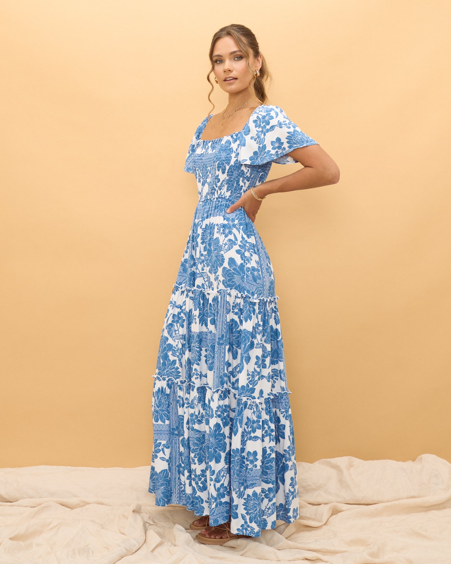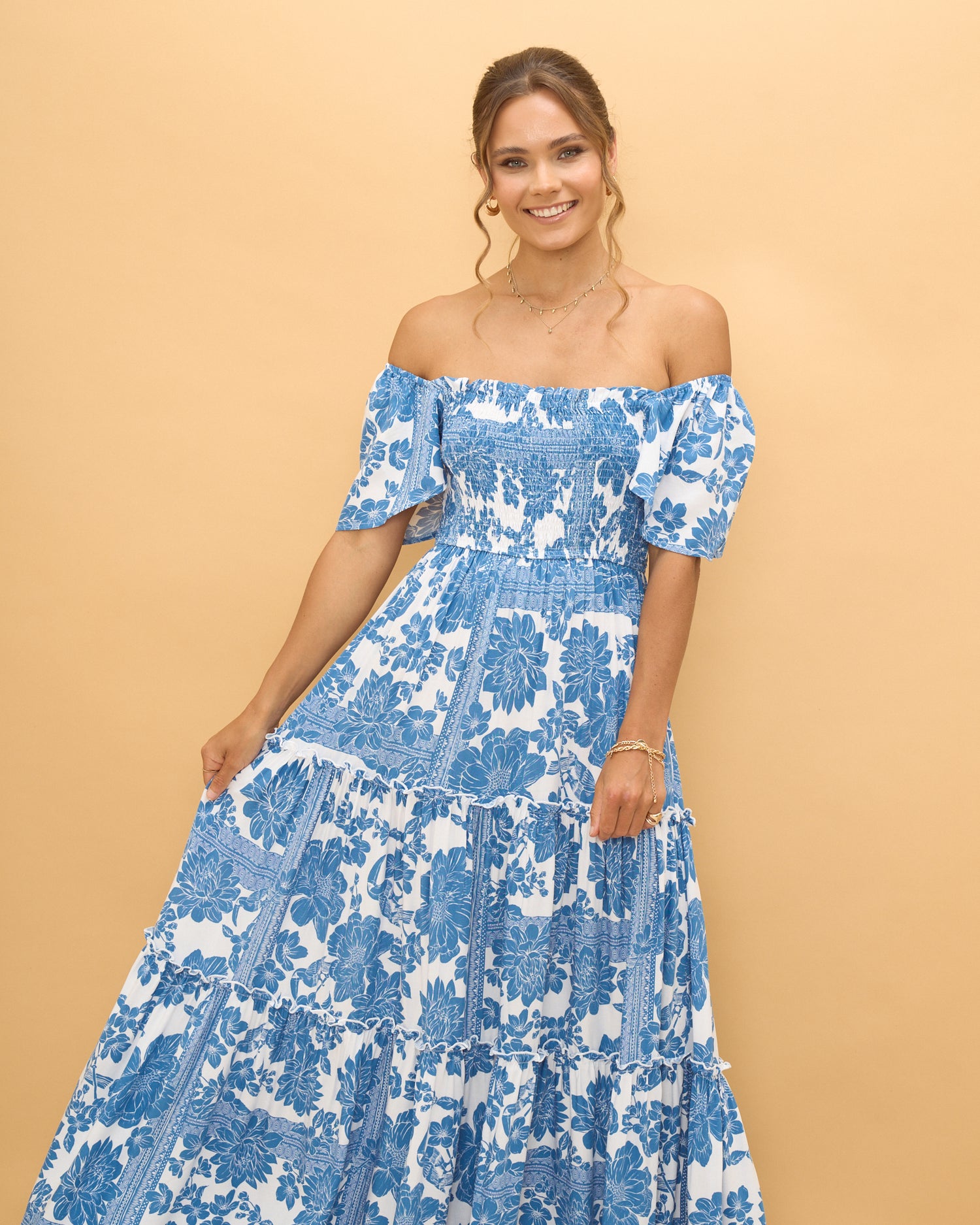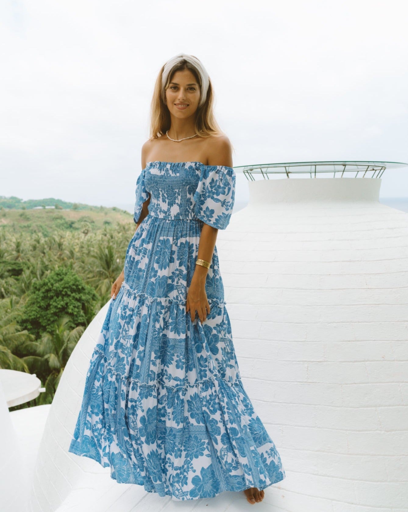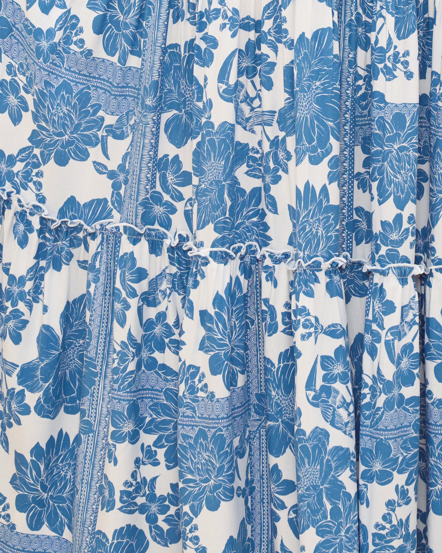 Tatiana Blue Floral Boho Tiered Maxi Dress